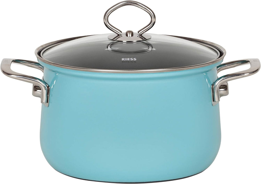 Riess, 0558-037, Emaille-Set, Kochtopf-Set, NOUVELLE KRISTALLBLAU, 5-teilig, Fleischtopf 16 cm, 20 c