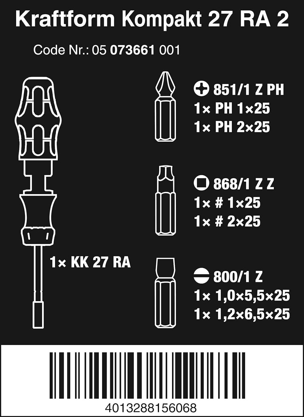Wera 05073661002 Ratschenschraubendreher Kraftform Kompakt 27 RA 2 SB, 7-teilig, 7 Stück, Farbig, On