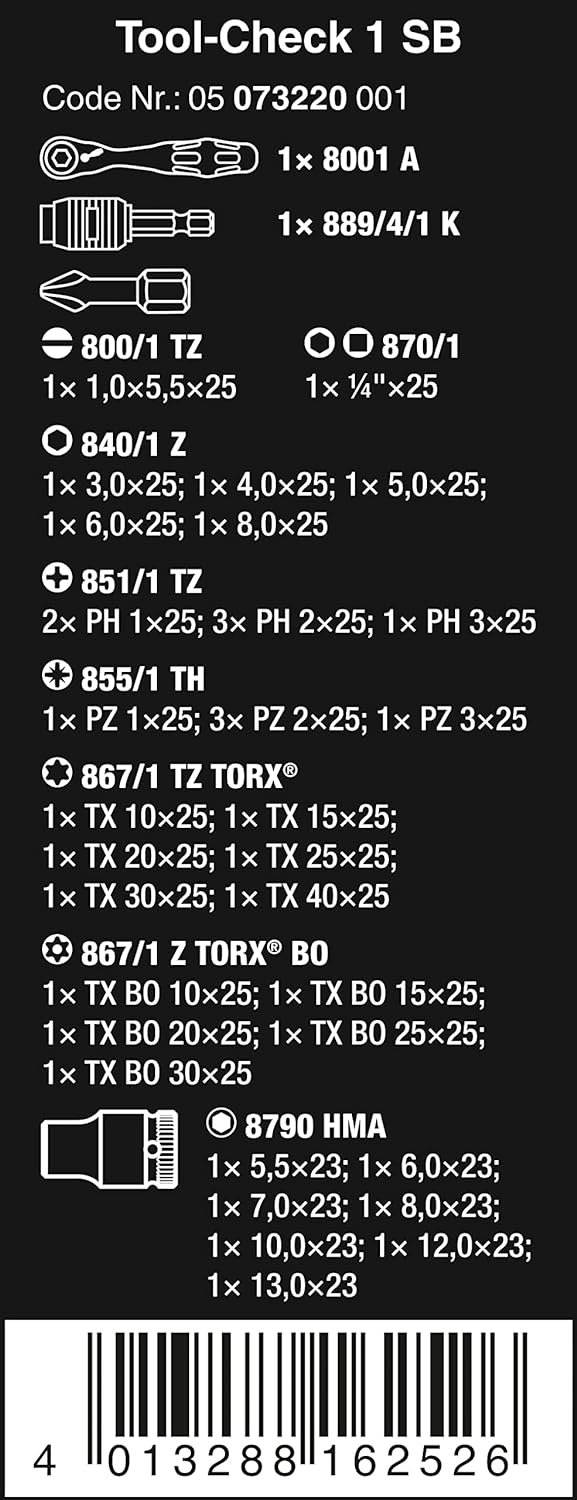 Wera 05073220001 Tool-Check 1 SB, Kompakt Werkzeug Satz, metrisch, 38-teilig Tool-Check 1 SB Single,
