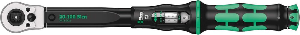 Wera 05075621001 Click-Torque C 2 Drehmomentschlüssel mit Umschaltknarre Schwarz, Grün 1/2", 20-100