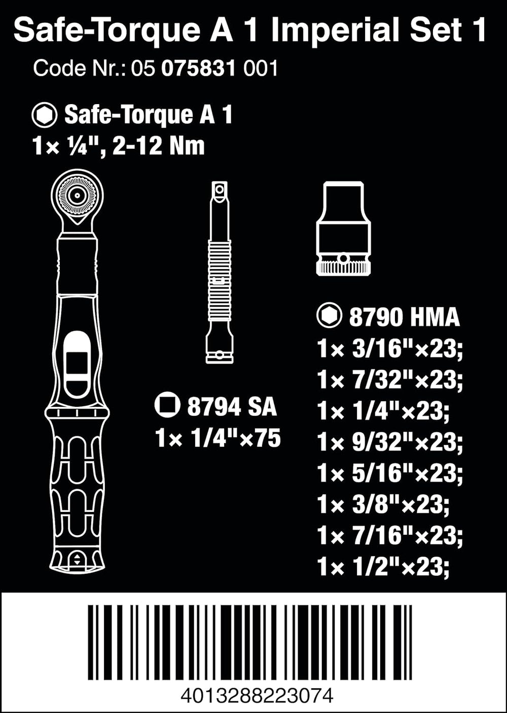 Wera 05075831001 Safe-Torque A 1 Imperial Set, Drehmomentschlüssel-Satz, 1-4'' Vierkant, 2-12 Nm, 10