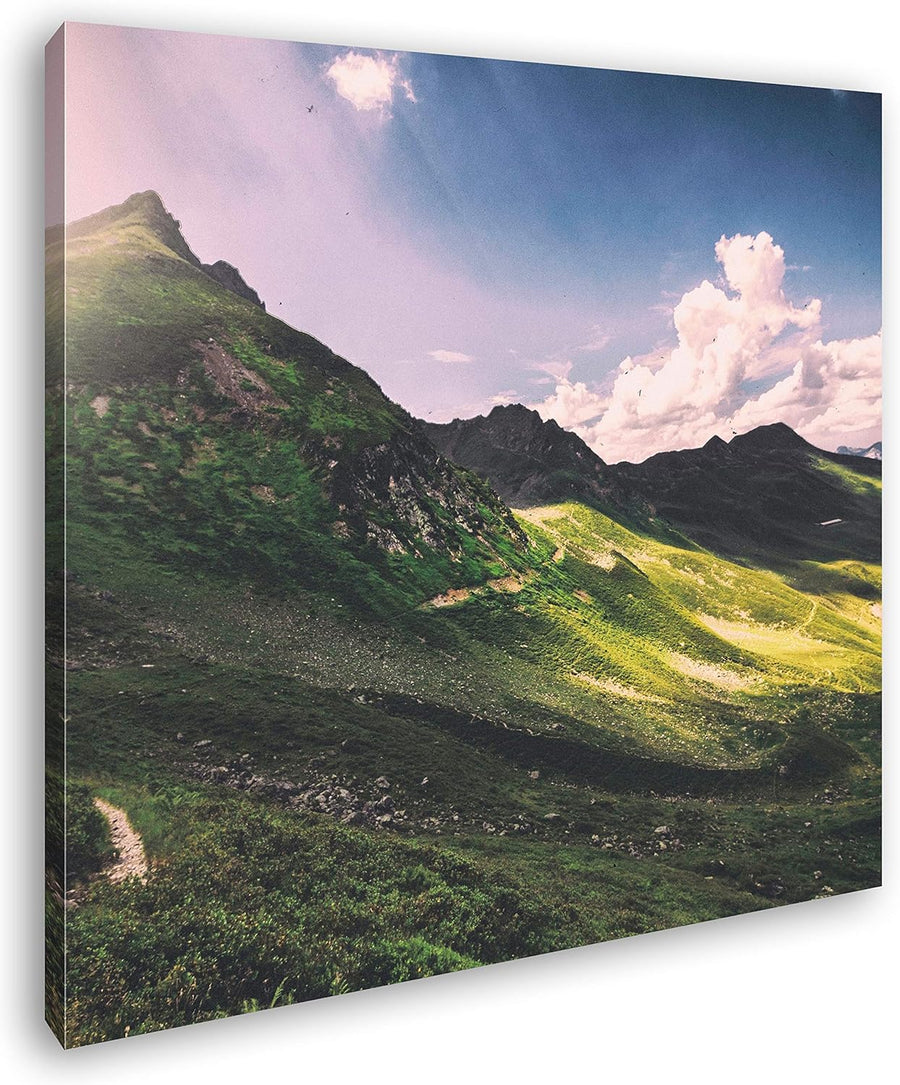 deyoli Sonnenaufgang über grünen Bergen Format: 70x70 als Leinwandbild, Motiv fertig gerahmt auf Ech