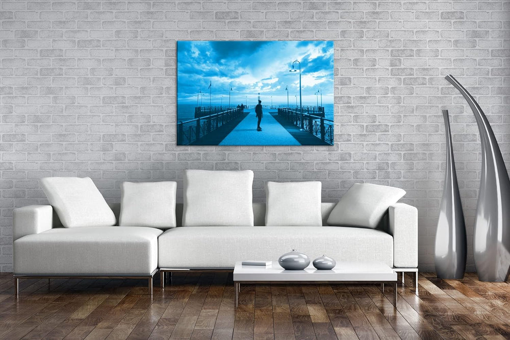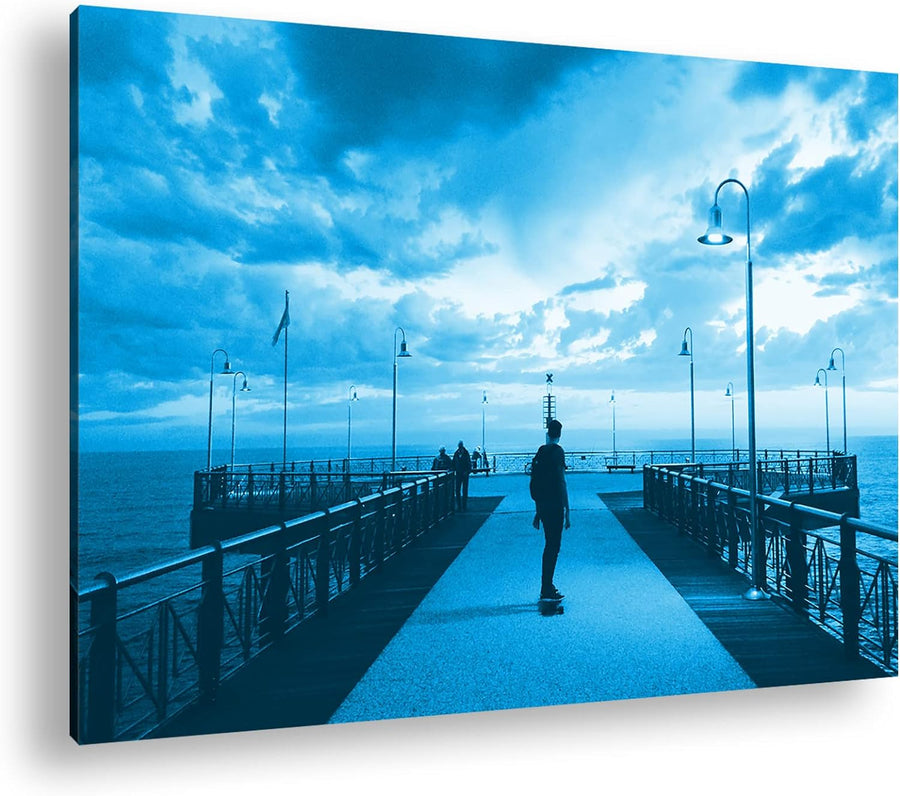deyoli Skater bei Sonnenuntergang Format: 80x60 Effekt: Monocrome Blau als Leinwandbild, Motiv ferti