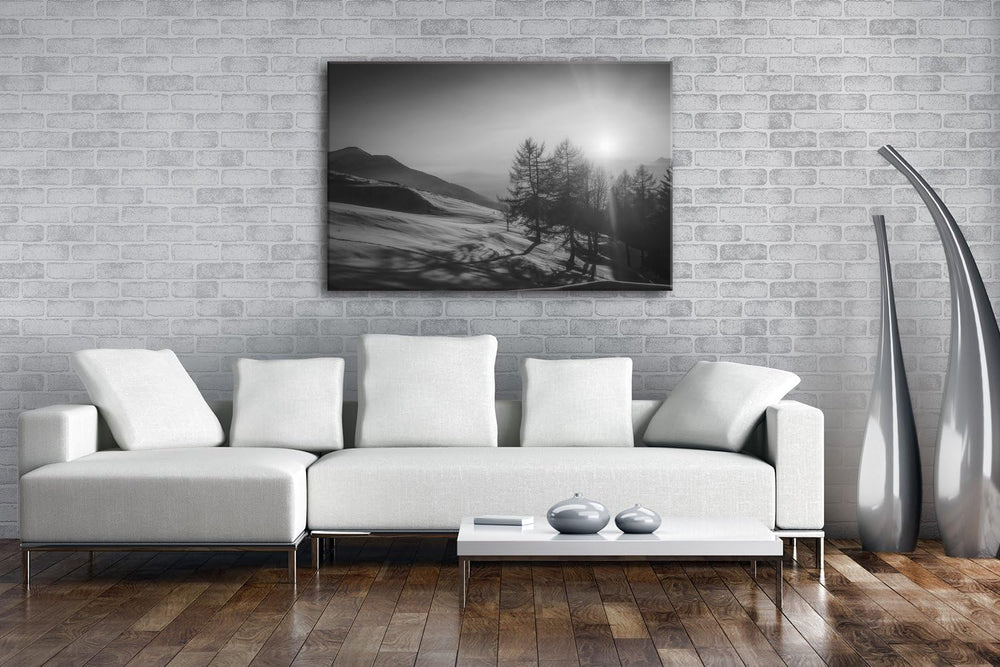 deyoli Sonnenaufgang in den schneebedeckten Bergen Format: 80x60 Effekt: Schwarz/Weiss als Leinwand,