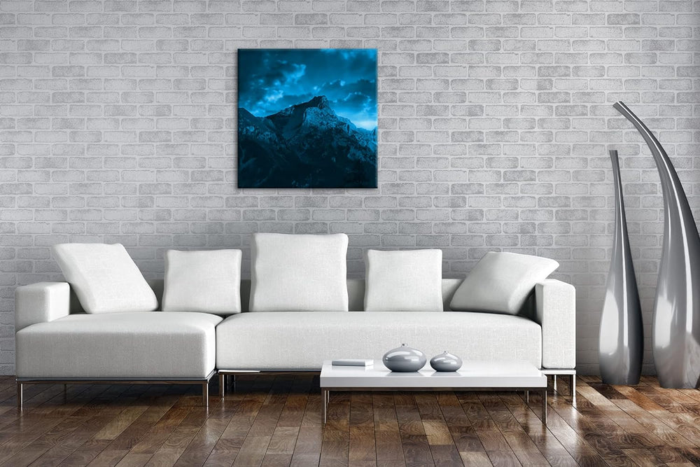 deyoli Sonnenaufgang hinter verschneiten Berggipfeln Format: 60x60 Effekt: Monocrome Blau als Leinwa