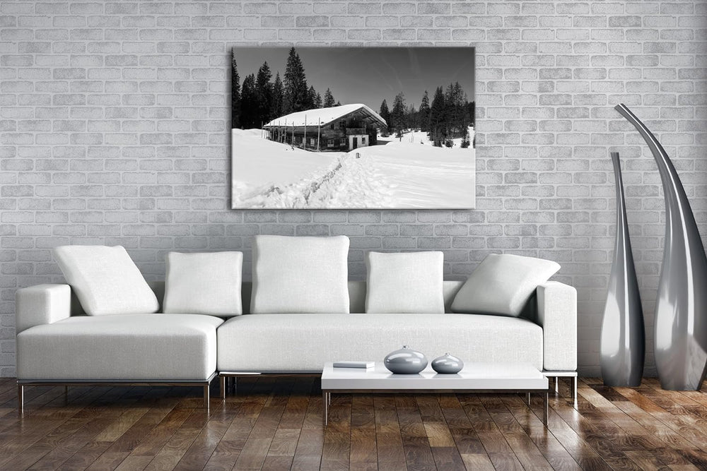 deyoli Skihütte im Winter Effekt: Schwarz/Weiss Format: 60x40 als Leinwandbild, Motiv fertig gerahmt