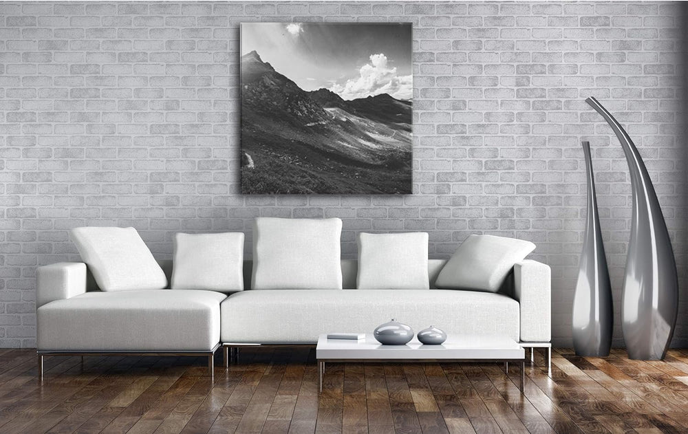 deyoli Sonnenaufgang in den schneebedeckten Bergen Format: 60x60 Effekt: Schwarz&Weiss als Leinwandb