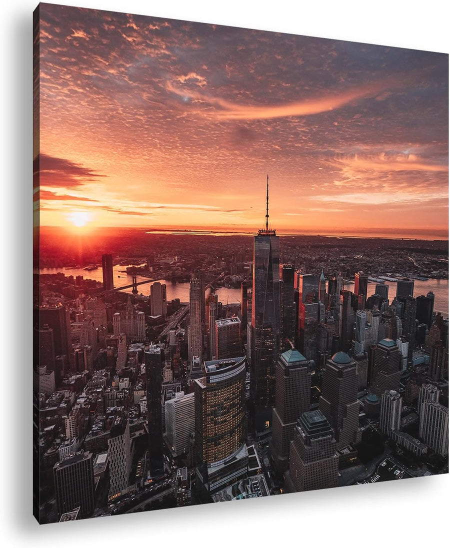 deyoli Skyline bei Sonnenuntergang Format: 60x60 cm als Leinwandbild, Motiv fertig gerahmt auf Echth