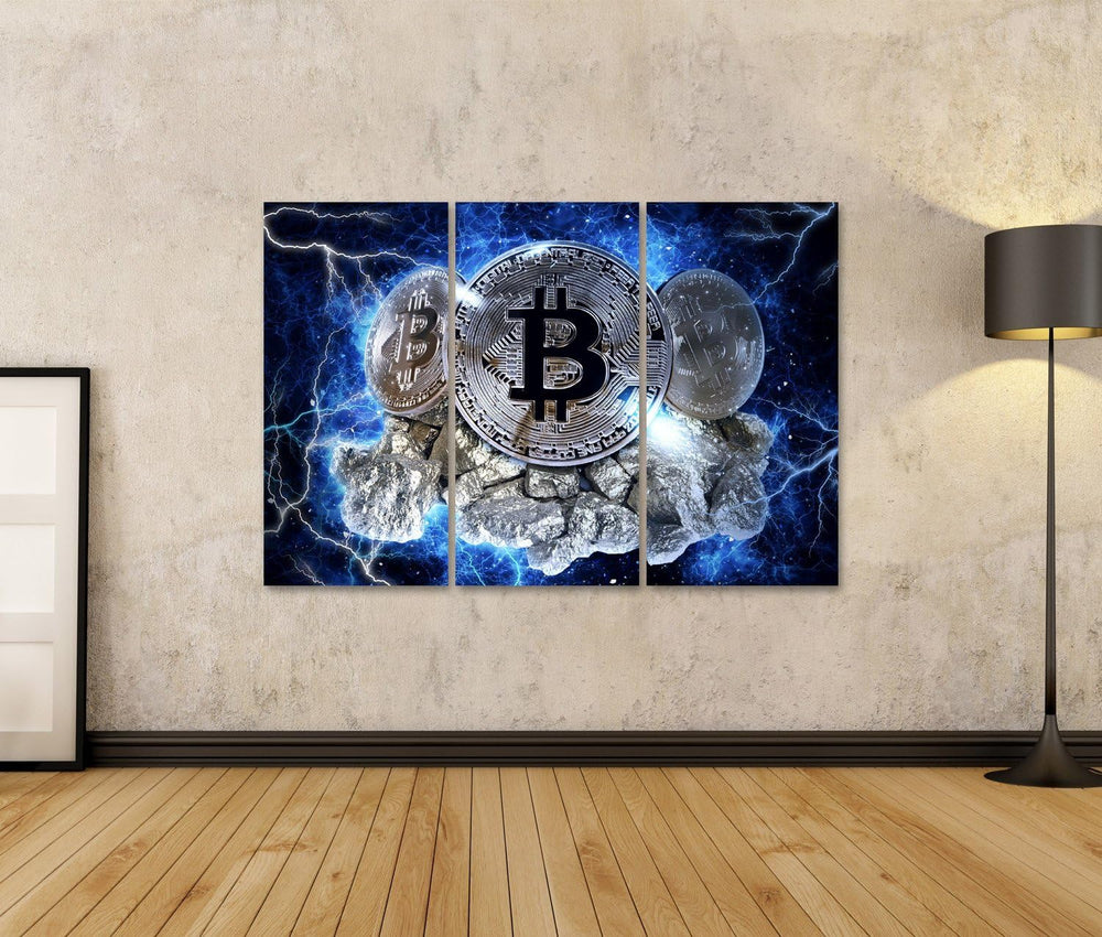 islandburner Bild Bilder auf Leinwand Gold-Bitcoin-Münze. Bitcoin-Kryptowährung Wandbild, Poster, Le