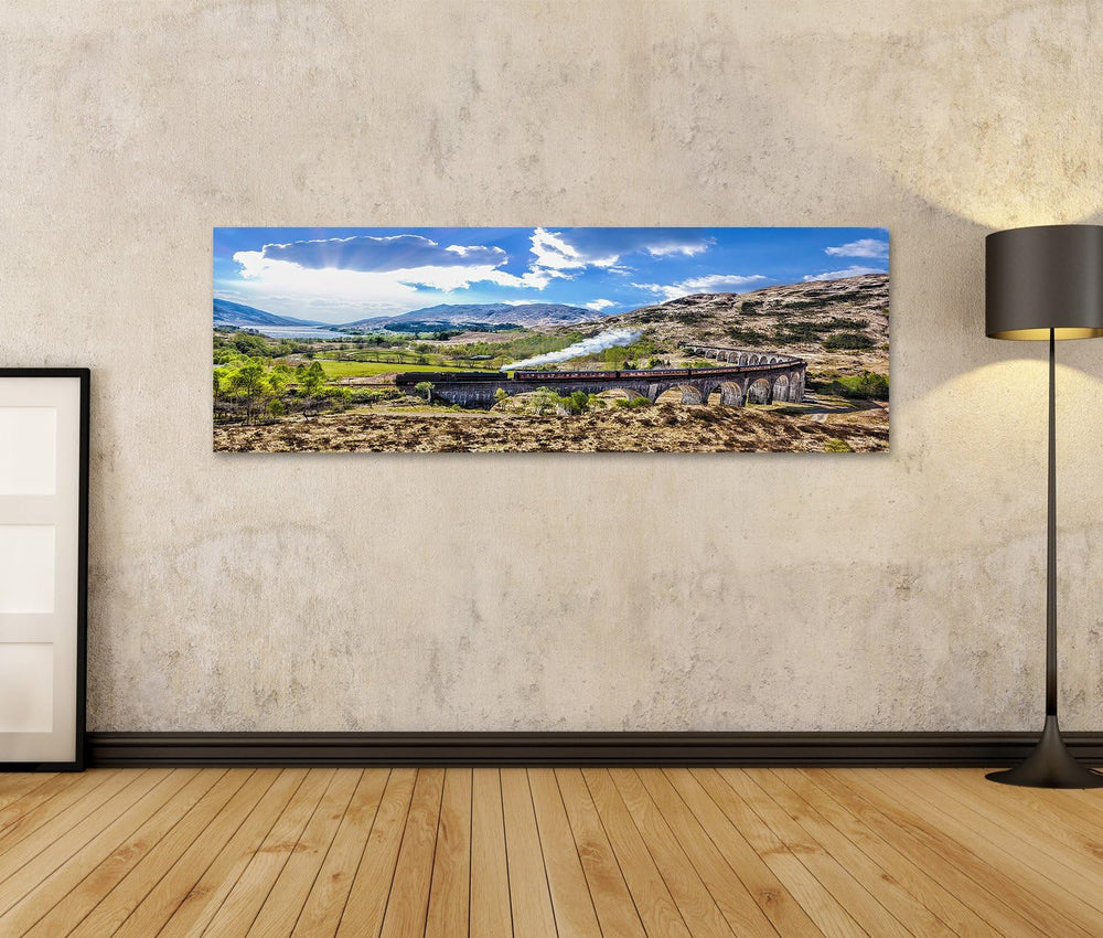 islandburner Bild Bilder auf Leinwand Glenfinnan-Eisenbahn-Viadukt in Schottland mit dem Jacobite-Da