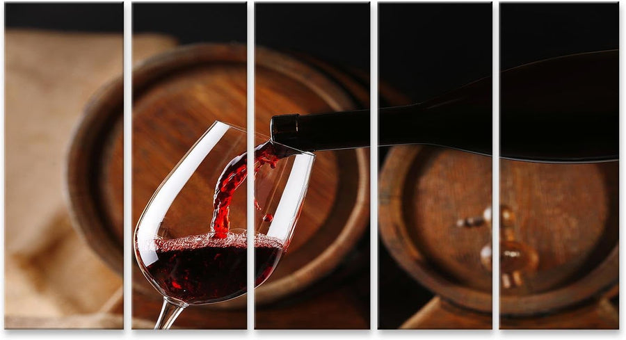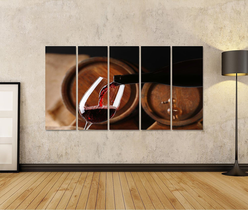 islandburner Bild Bilder auf Leinwand Giessen Rotwein aus Flasche in Glas mit Holz Wein Fässer auf H