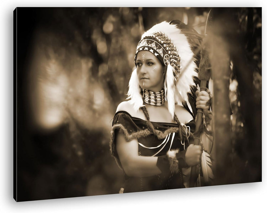 deyoli stolze Indianerin Format: 80x60 Effekt: Sepia als Leinwand, Motiv fertig gerahmt auf Echtholz