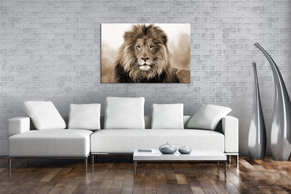 deyoli Stolzer Löwe Effekt: Sepia Format: 80x60 als Leinwandbild, Motiv fertig gerahmt auf Echtholzr