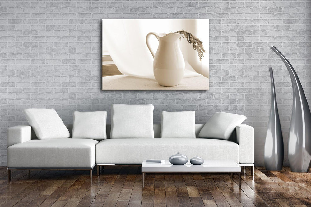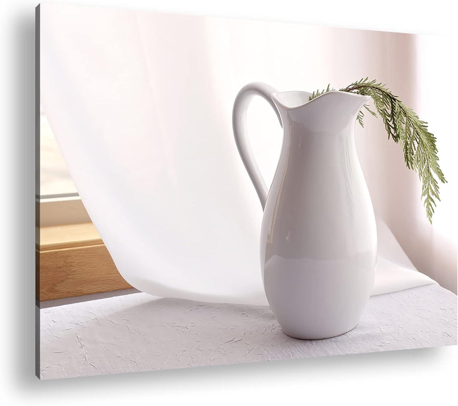 deyoli Stillleben einer weissen Vase im Format: 80x60 als Leinwandbild, Motiv fertig gerahmt auf Ech