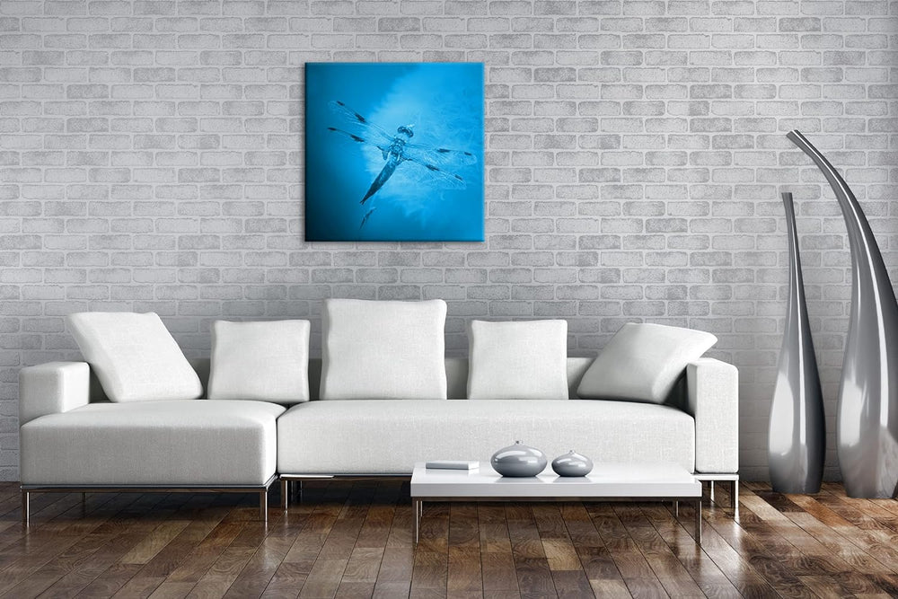 deyoli stolze Libelle Format: 70x70 Effekt: Monocrome Blau als Leinwand, Motiv fertig gerahmt auf Ec