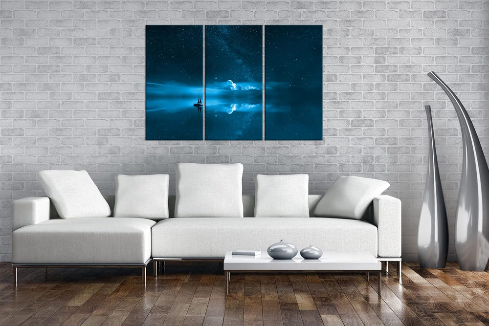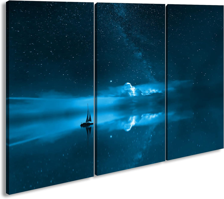 deyoli Sternenhimmel auf See Format: 120x80 3Teilig Effekt: Monocrome Blau als Leinwand, Motiv ferti