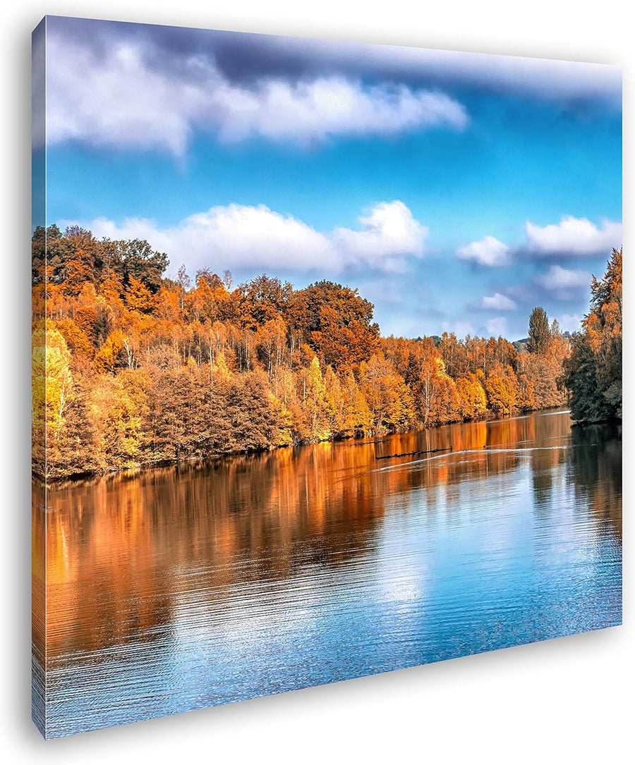 deyoli Stiller See Format: 70x70 als Leinwand, Motiv fertig gerahmt auf Echtholzrahmen, Hochwertiger