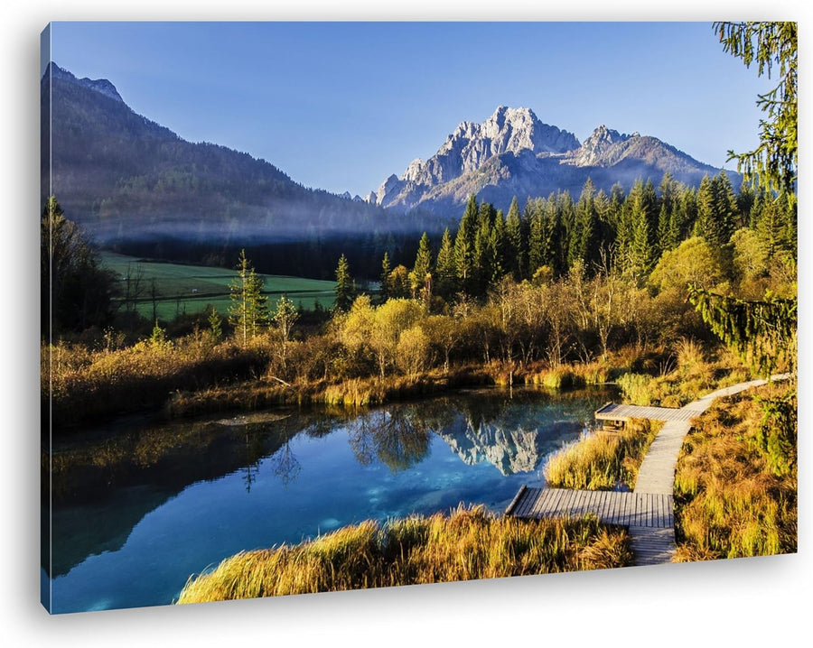 deyoli stiller See im Tal Format: 60x40 als Leinwand, Motiv fertig gerahmt auf Echtholzrahmen, Hochw