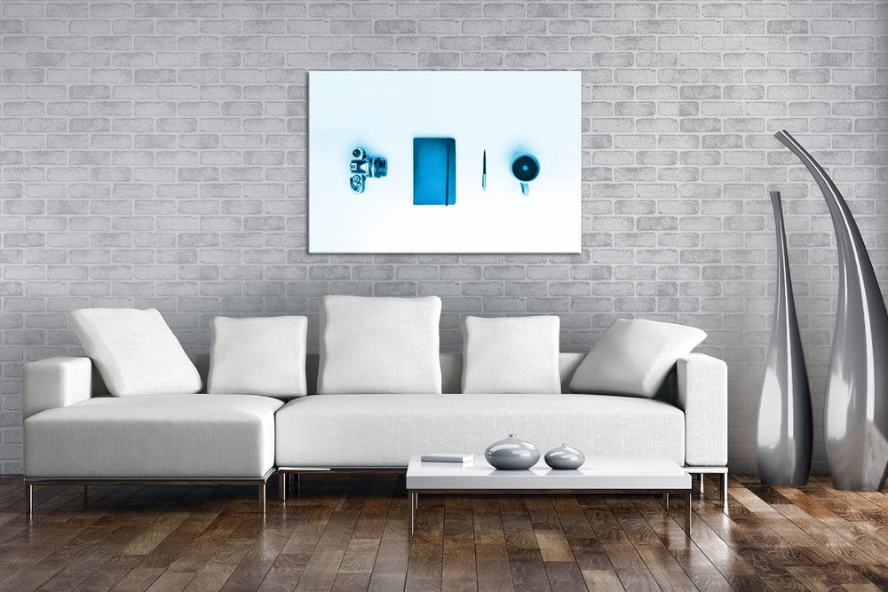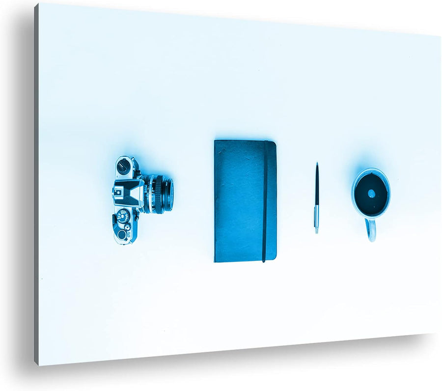 deyoli Stillleben einer Kamera und Notebook Format 80x60 Effekt: Monocrome Blau als Leinwandbild, Mo