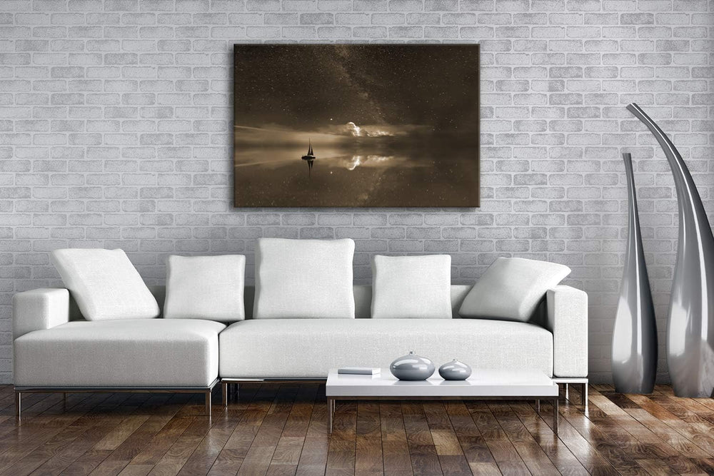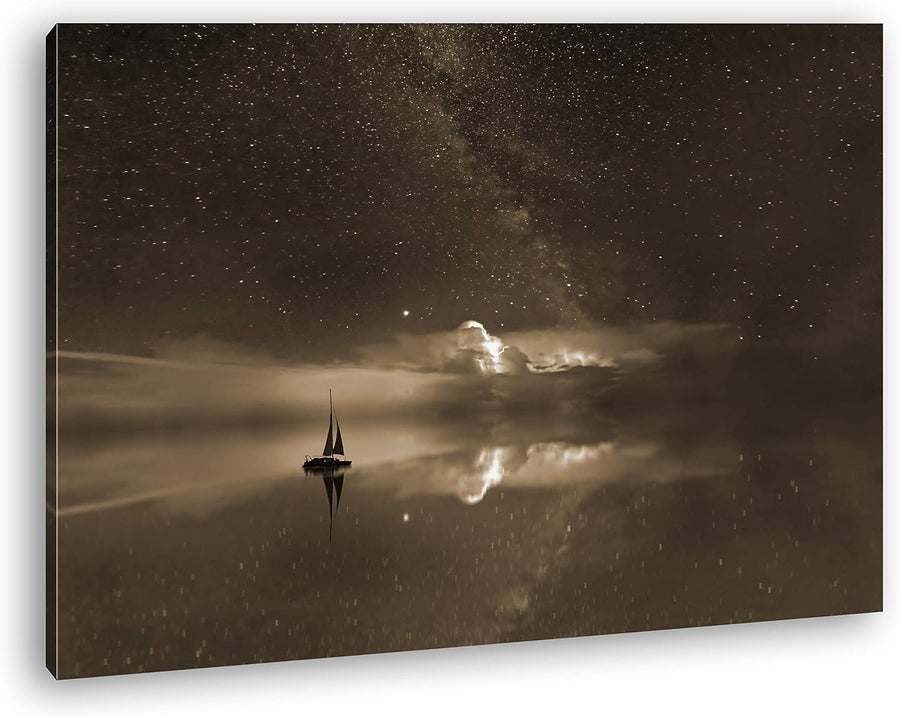 deyoli Sternenhimmel auf See Format: 120x80 Effekt: Sepia als Leinwand, Motiv fertig gerahmt auf Ech