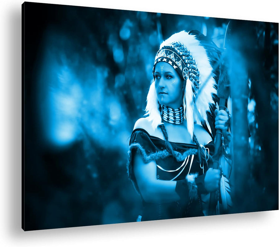 deyoli stolze Indianerin Format: 80x60 Effekt: Monocrome Blau als Leinwand, Motiv fertig gerahmt auf