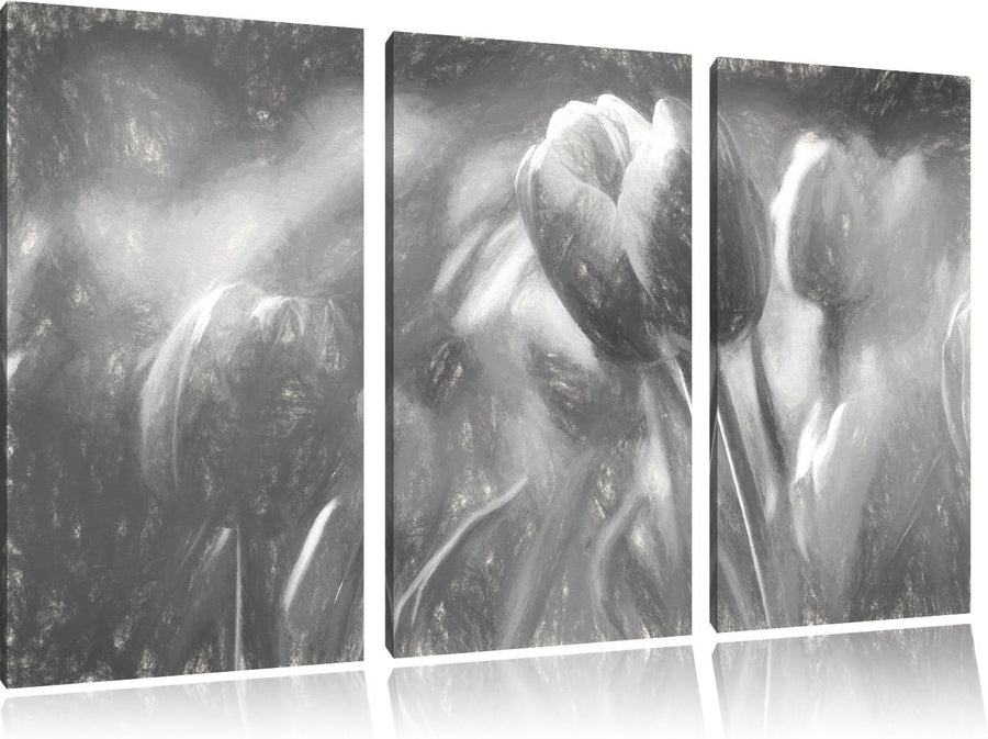 Pixxprint Blühende Tulpen als Leinwandbild/Grösse: 3 Teilig (120x80) / Wandbild/Kunstdruck/fertig be