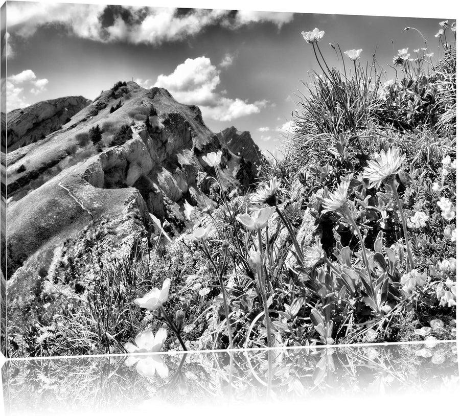 Pixxprint Blumenwiese Bergsee / 100x70cm Leinwandbild bespannt auf Holzrahmen/Wandbild Kunstdruck De
