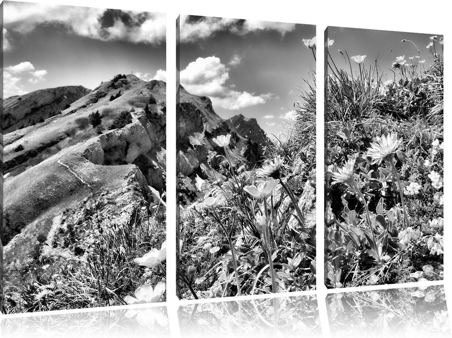 Pixxprint Blumen im Sonnenschein B&W Detail 3-Teiler Leinwandbild 120x80 Bild auf Leinwand