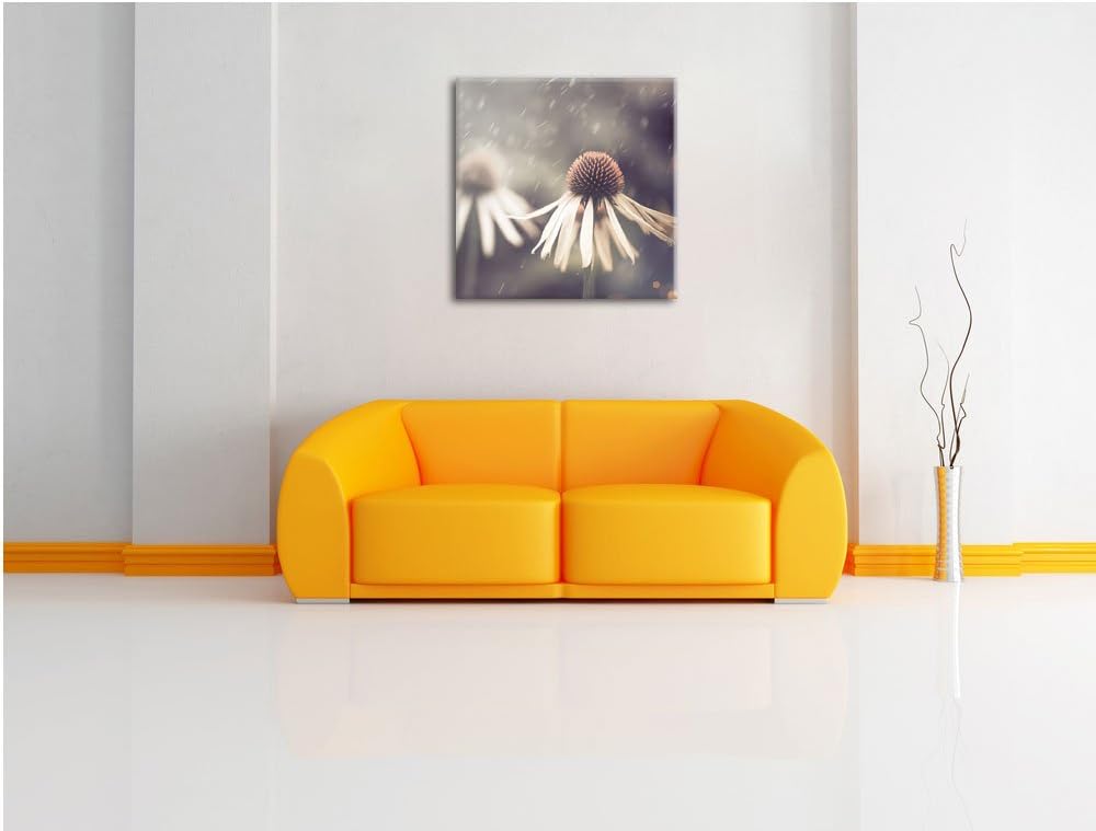 Pixxprint Blumen im Regen als Leinwandbild/Grösse: 70x70 cm/Wandbild/Kunstdruck/fertig bespannt, 70x