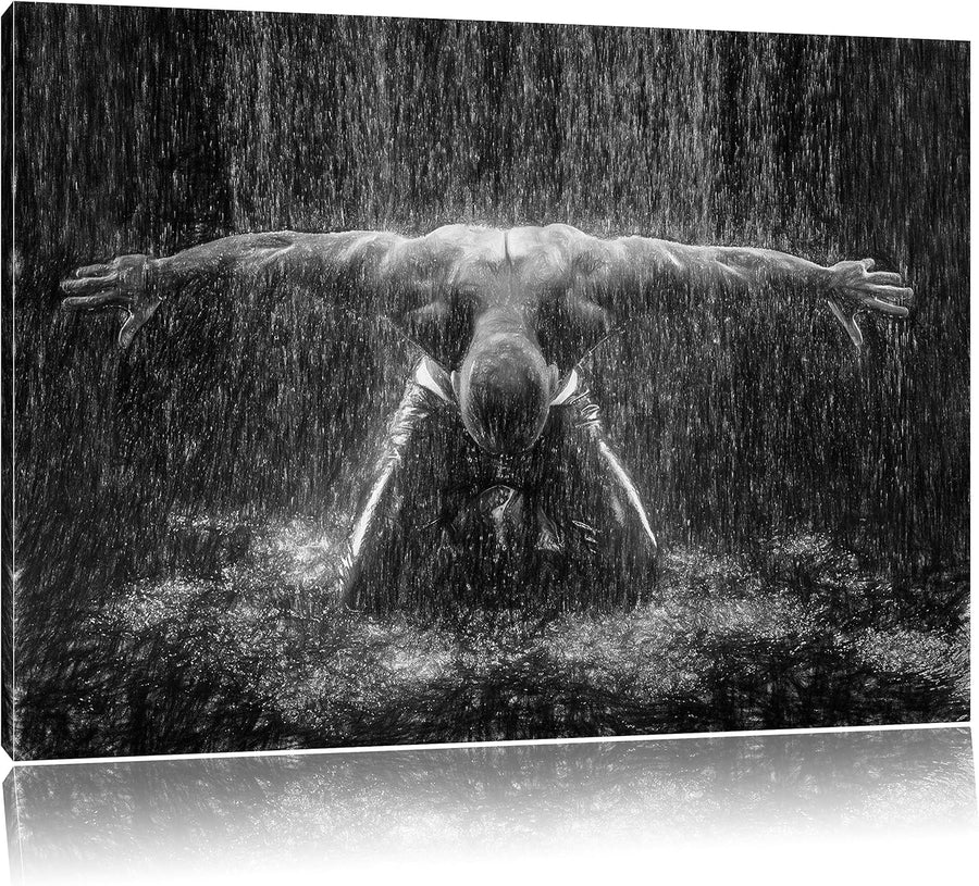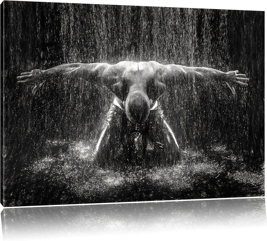 Pixxprint Bodybuilder im Regen Kunst als Leinwandbild/Grösse: 100x70 cm/Wandbild/Kunstdruck/fertig b