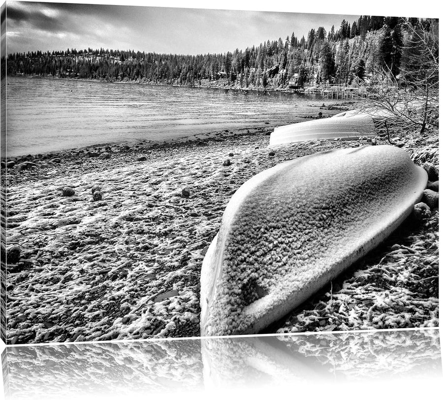 Pixxprint Boote im Winter als Leinwandbild/Grösse: 100x70 cm/Wandbild/Kunstdruck/fertig bespannt, 10