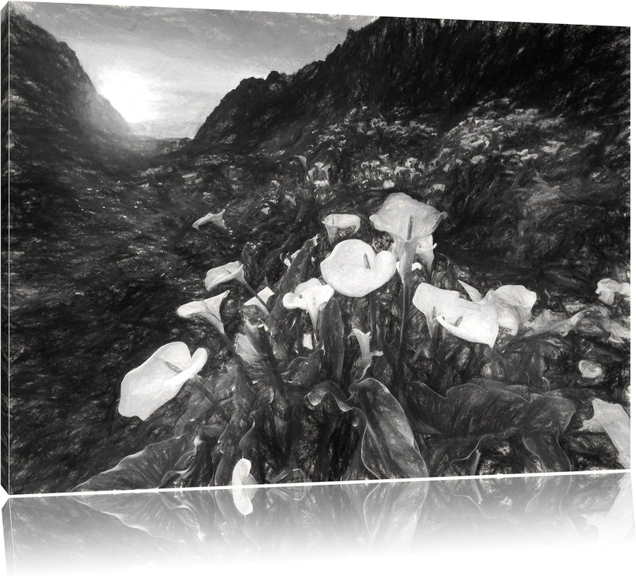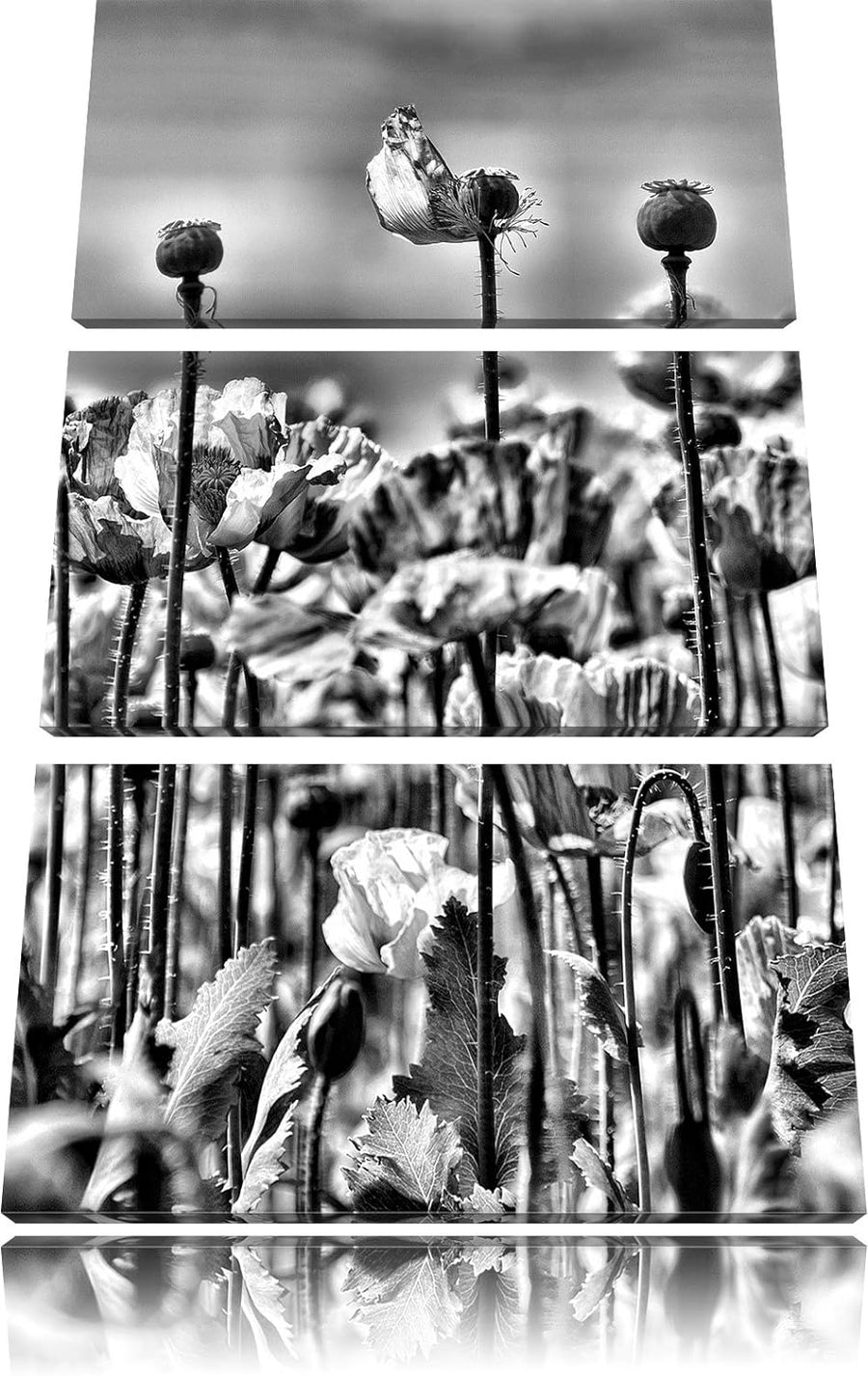 Pixxprint Blumenwiese Mohnblumen schwarz/weiss, Format: 70x100 auf hochkantiges Leinwand, 70x100