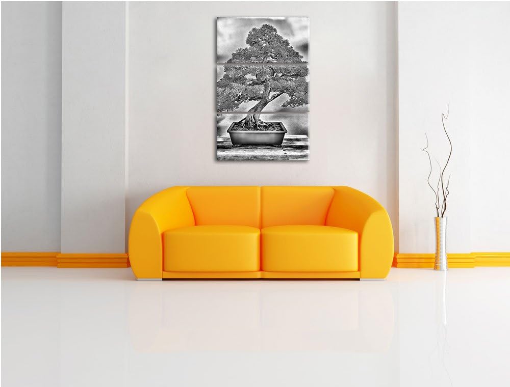 Pixxprint Bonsai Baum als Leinwandbild | Grösse: 3 Teilig (120x80) | Wandbild| Kunstdruck | fertig b