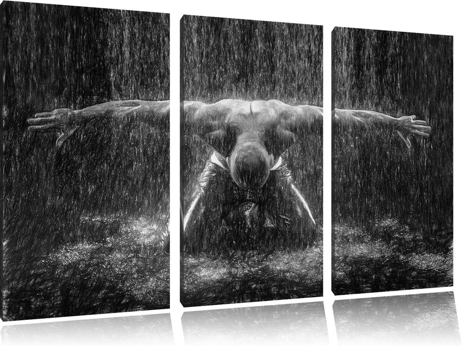 Pixxprint Bodybuilder im Regen als Leinwandbild/Grösse: 3 Teilig (120x80 cm) cm/Wandbild/Kunstdruck/