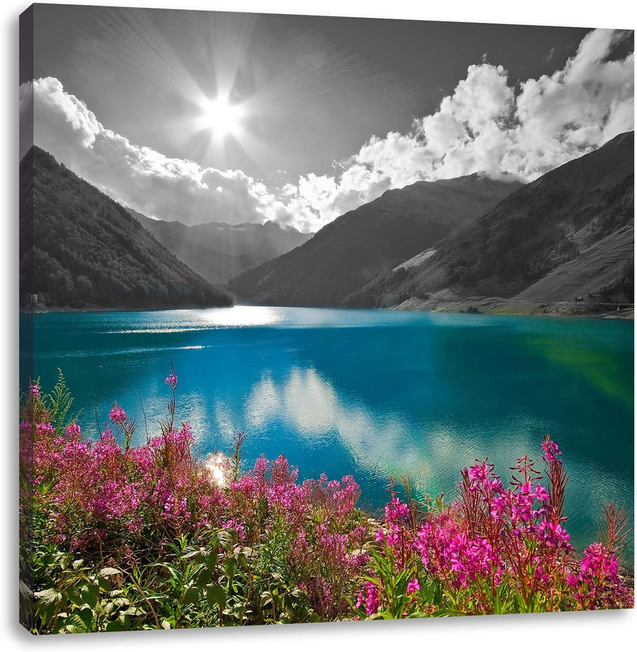 Pixxprint Blumenwiese See als Leinwandbild/Grösse: 70x70 cm/Wandbild/Kunstdruck/fertig bespannt, 70x