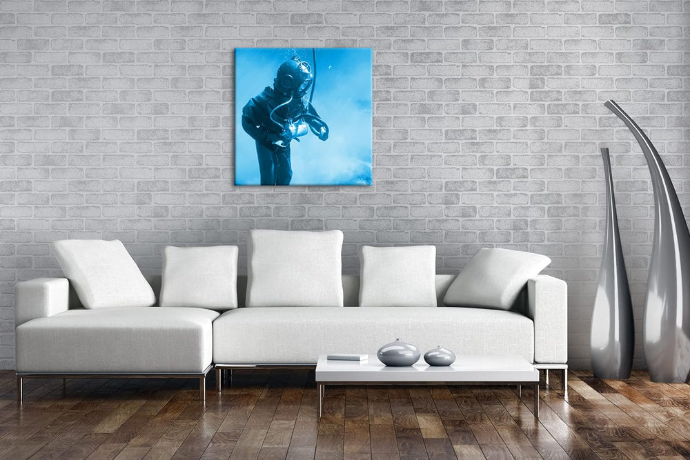 deyoli Taucher in Einer Alten Ausrüstung Format: 60x60 als Leinwandbild, Motiv fertig gerahmt auf Ec