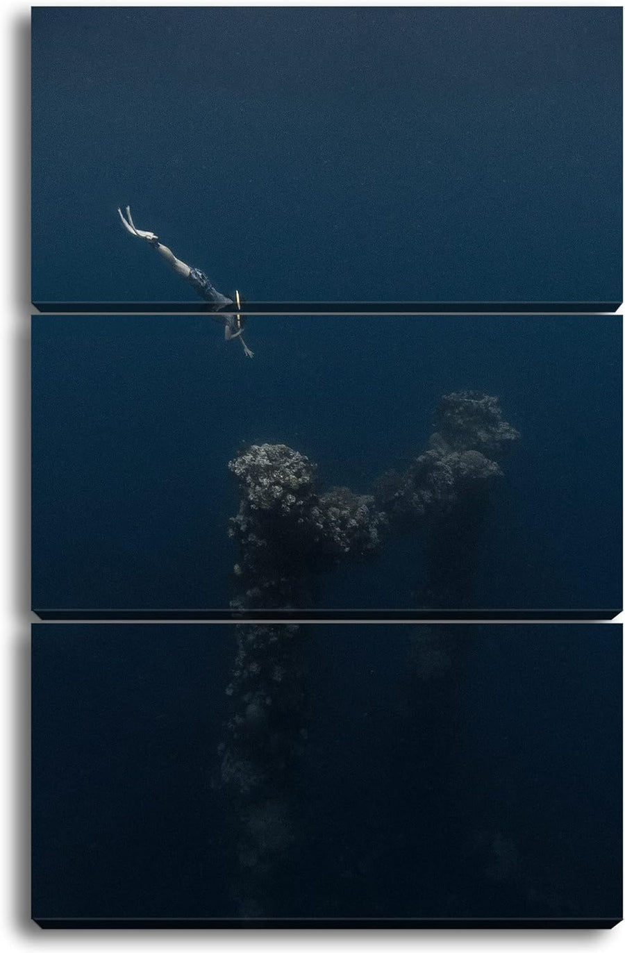 deyoli tiefer Tauchgang zum Meeresgrund Format: 3Teilig als Leinwandbild, Motiv fertig gerahmt auf E