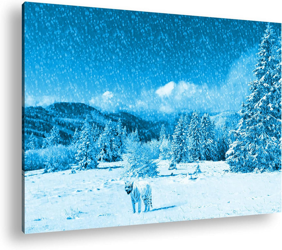 deyoli Tiger im Schneesturm Format 80x60 Effekt: Monocrome Blau als Leinwandbild, Motiv fertig gerah