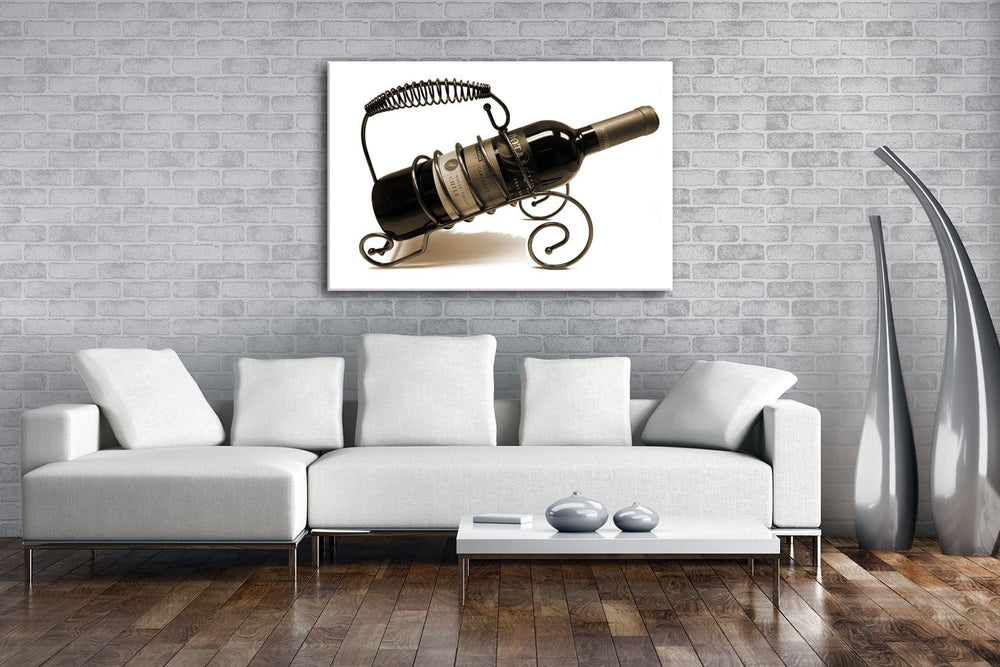 deyoli teure Weinflasche im Format: 100x70 als Leinwandbild, Motiv fertig gerahmt auf Echtholzrahmen