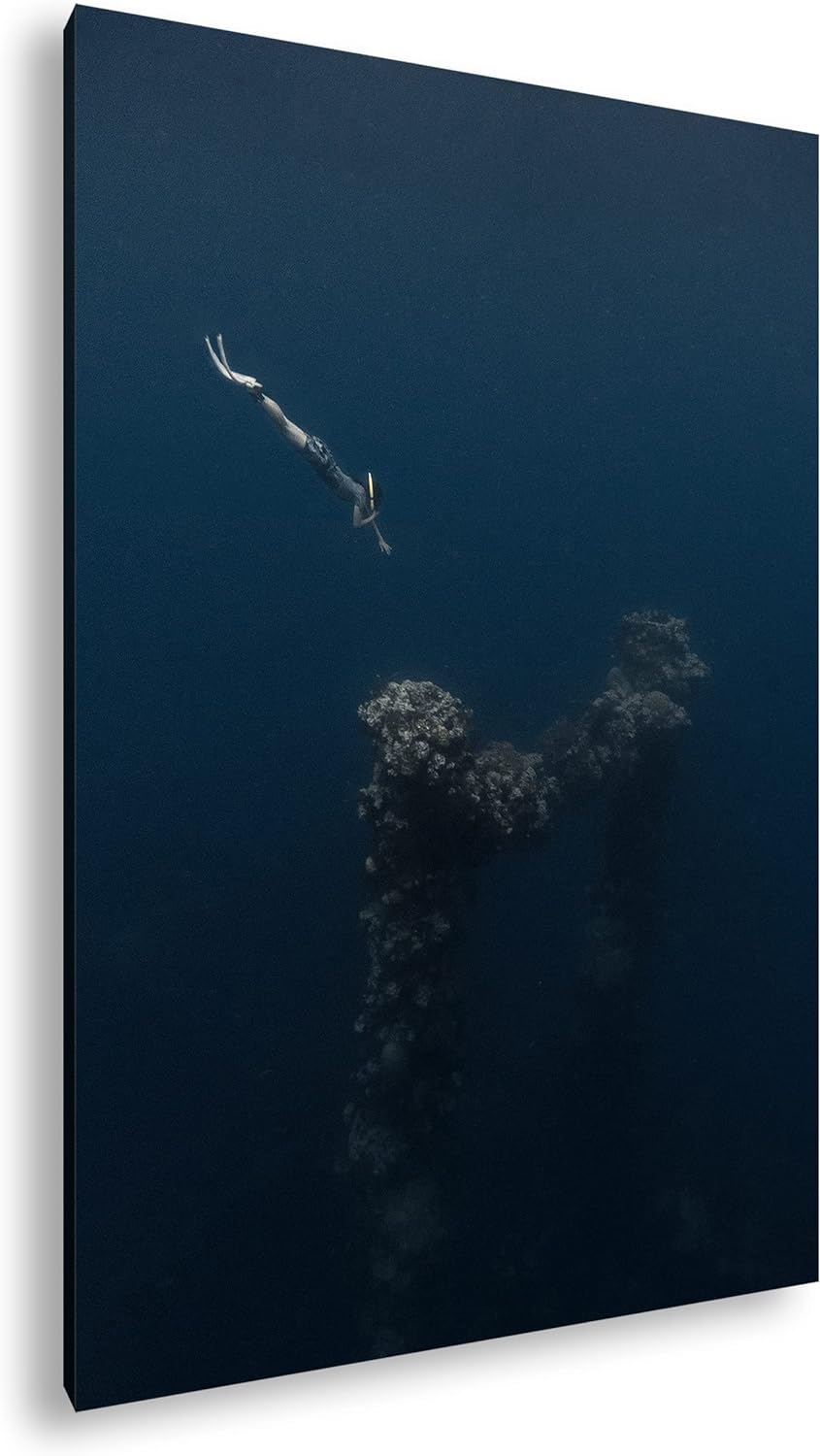 deyoli tiefer Tauchgang zum Meeresgrund Format: 120x80 als Leinwandbild, Motiv fertig gerahmt auf Ec
