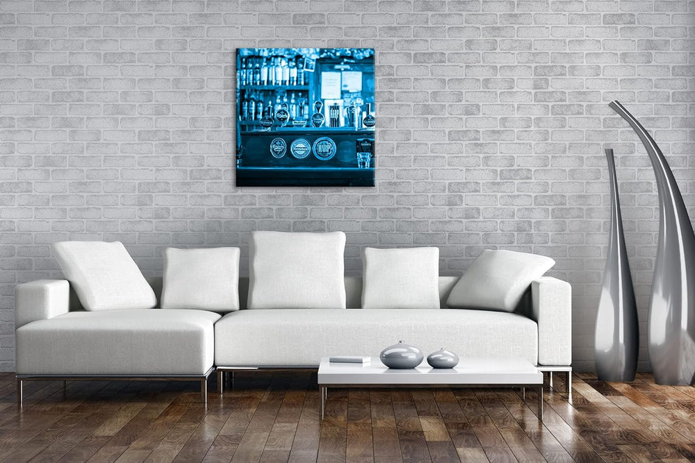 deyoli Theke in einem Irischen Bar Format: 70x70 Effekt: Monocrome Blau als Leinwandbild, Motiv fert