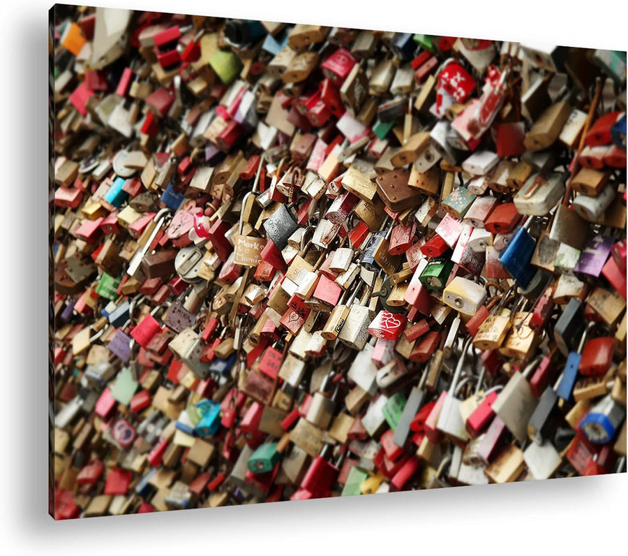 deyoli tausende Schlösser mit Herzen im Format: 80x60 als Leinwandbild, Motiv fertig gerahmt auf Ech
