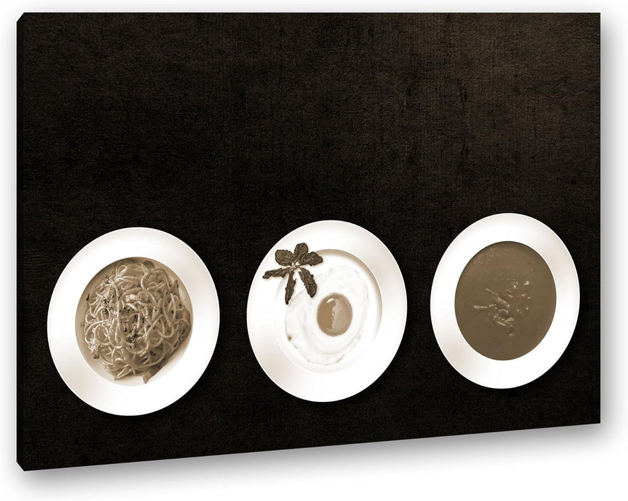 deyoli Teller mit Mahlzeiten Format: 80x60 Effekt: Sepia als Leinwandbild, Motiv fertig gerahmt auf
