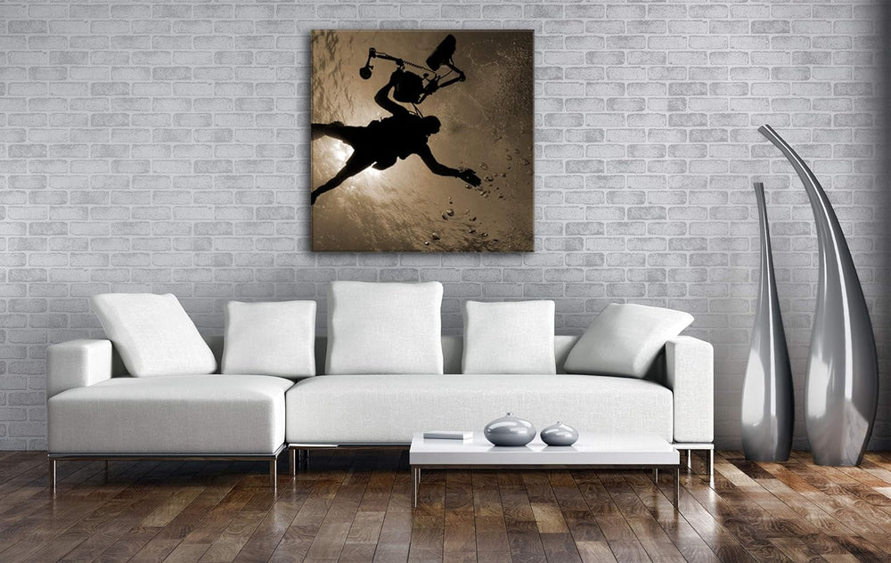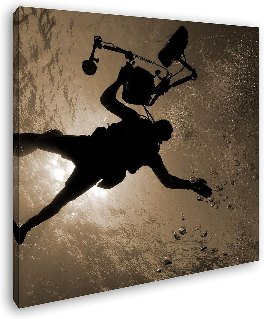 deyoli Taucher im tiefen Ozean Format: 60x60 Effekt: Sepia als Leinwandbild, Motiv auf Echtholzrahme