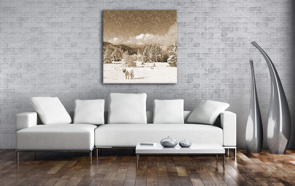 deyoli Tiger im Schneesturm Format: 60x60 Effekt: Sepia als Leinwandbild, Motiv auf Echtholzrahmen,