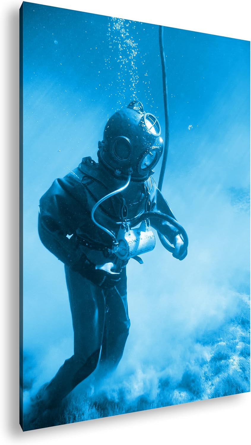 deyoli Taucher in einer alten Ausrüstung Format 80x60 Effekt: Monocrome Blau als Leinwandbild, Motiv
