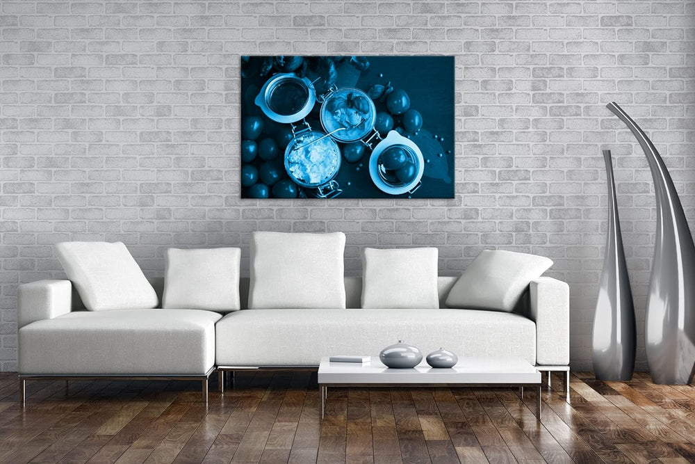 deyoli Tomaten mit Schafskäse Format 80x60 Effekt: Monocrome Blau als Leinwandbild, Motiv fertig ger