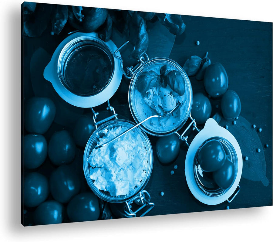 deyoli Tomaten Schafskäse und Basilikum Format 80x60 Effekt: Monocrome Blau als Leinwandbild, Motiv