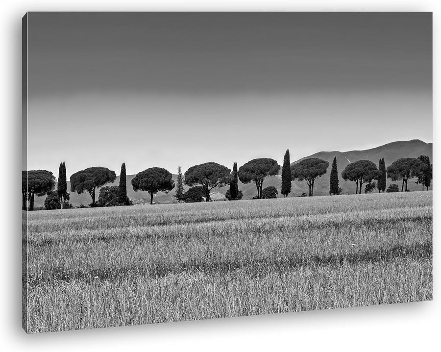 deyoli Toskana Landschaft mit Zypressen und Pinien Effekt: Schwarz/Weiss im Format: 60x40 als Leinwa