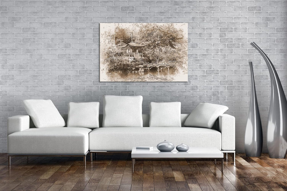 deyoli traditionell japanischer Garten Effekt: Sepia, Format: 80x60 als Leinwandbild, Motiv fertig g